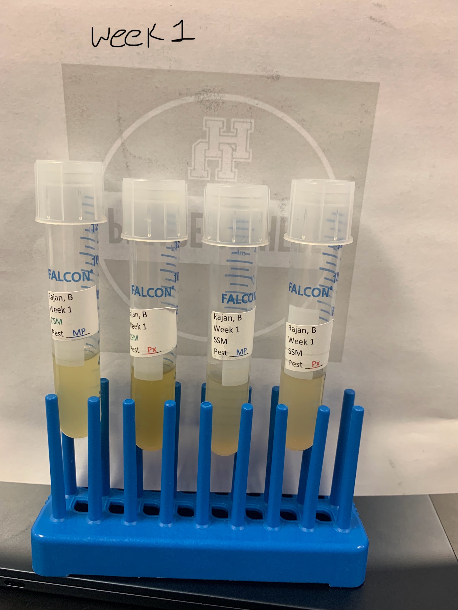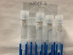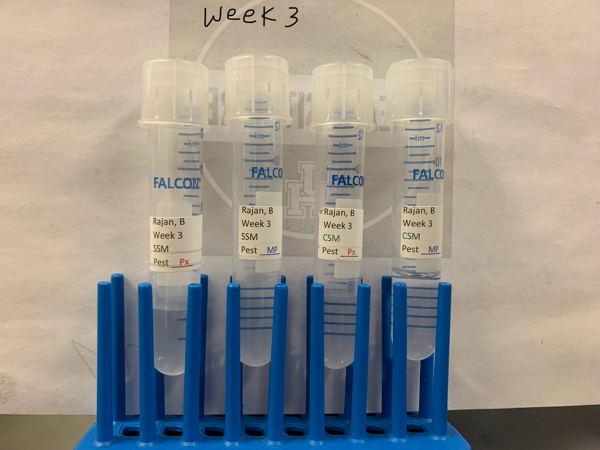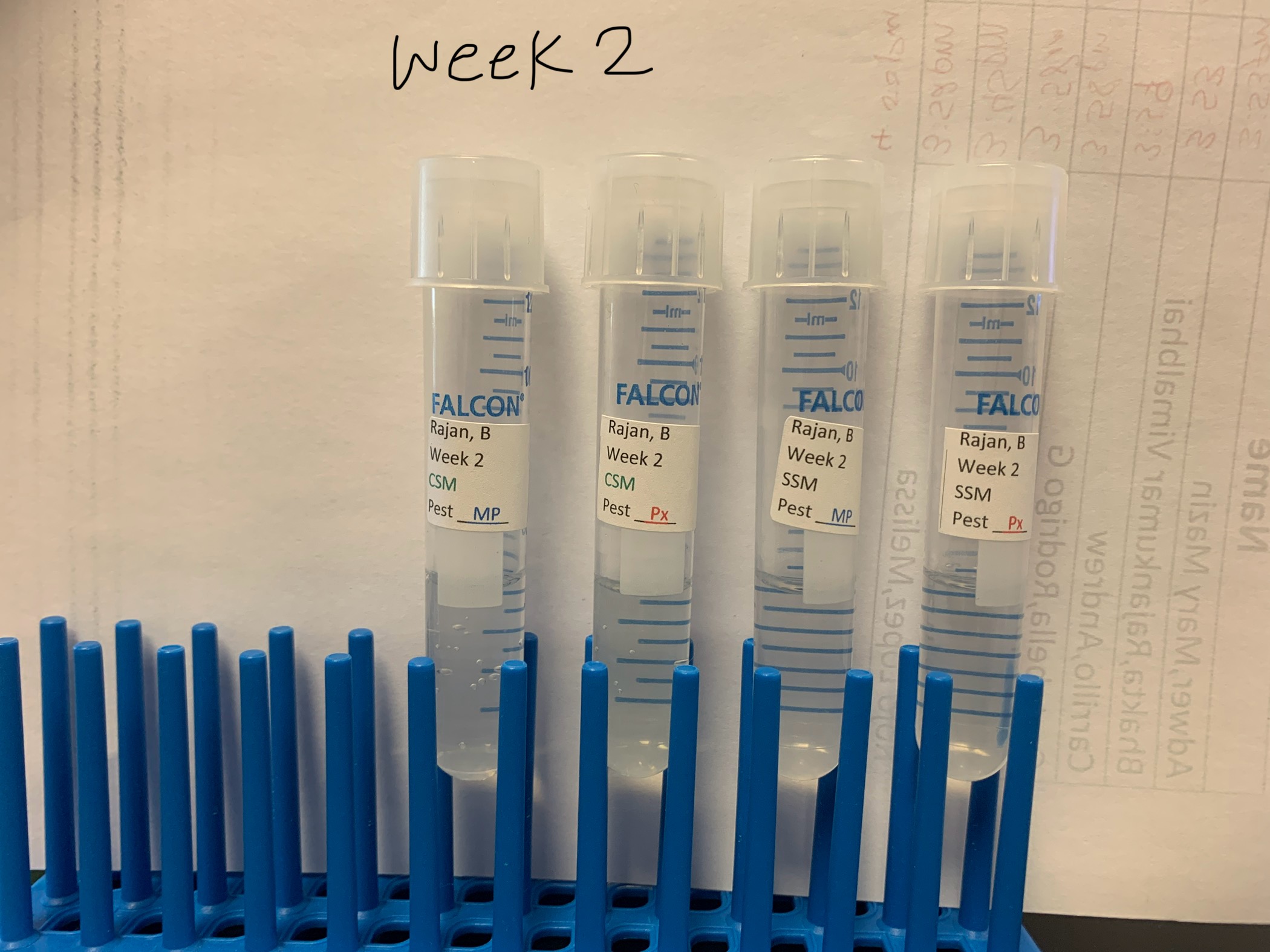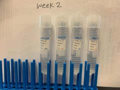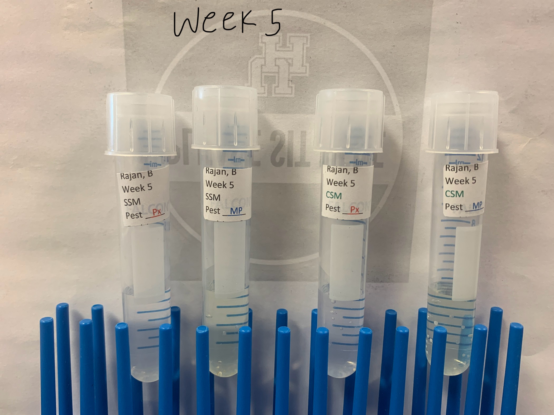 - Images 3-5: Weekly transfer of 200 microliters of the sample from the previous week to new tubes with the same labels, up to the 5th week.