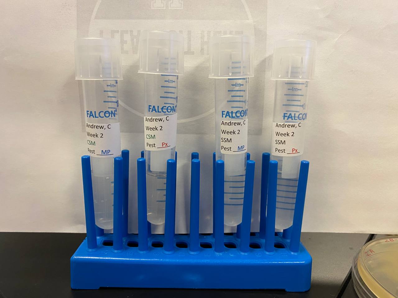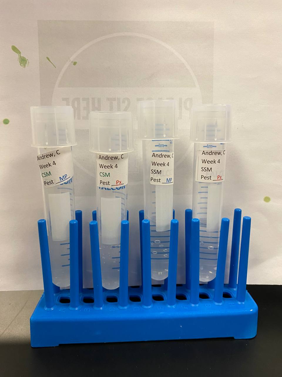 Each photo represents a photo where each minimal media culture tube’s image was taken after 1 week of 37°C incubation. The last two photos are of the overgrowth observed on the streaked MP and Px plates.